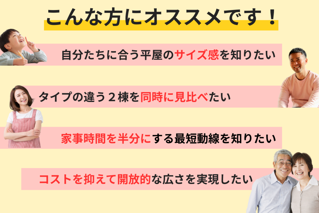 「自分たちに合う平屋」を具体的にイメージできます。